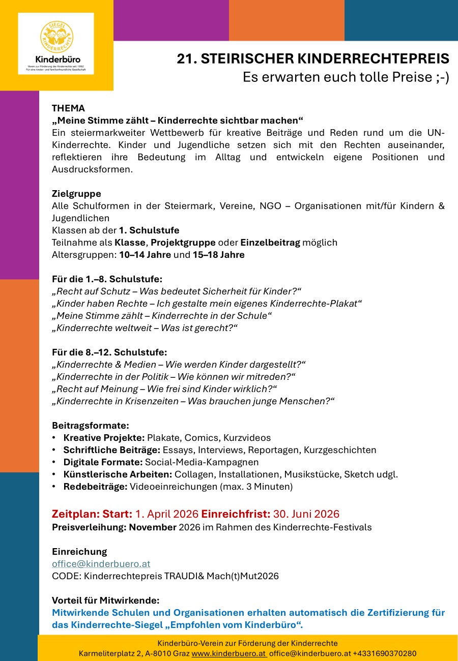 - Kinderrechte-Kompetenzpreise für Schulen, Pädagog: innen und Institutionen