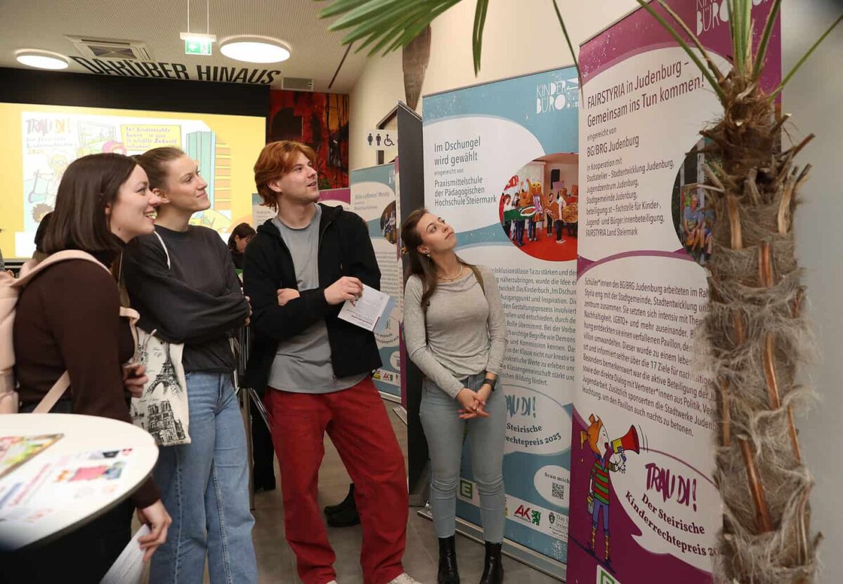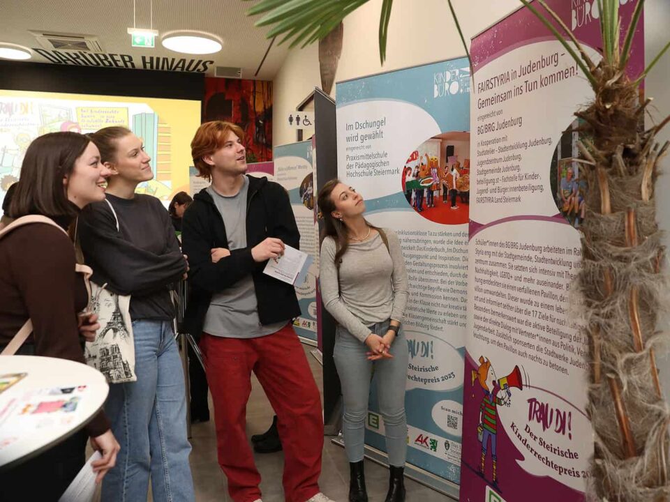 Gemeinsam wurde eine „Wanderausstellung“ erarbeitet und konzipiert, die von Studierenden des Studienzweiges Ausstellungs- und Kommunikationsdesign der FH JOANNEUM umgesetzt wurde.